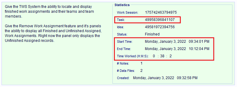 tasks will store the ID number of the new Work Session record too. This allows them to help you locate and